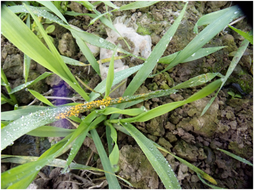 1月9日,永川区植保人员调查发现了小麦条锈病,庚即上报重庆市植保植检站。2018年1月10日,重庆市植保植检站测报科周天云科长、宿巧燕、牛小慧、王涛等亲临永川,深入卫星湖街道南华村,对小麦条锈病发生情况进行了详细调查,并提出了相应的防治指导意见。周天云指出,应加大普查力度,摸清条锈病发病区域,严密掌握发展动态,科学指导防控;加强组织发动,开展宣传培训,当田间条锈病普遍率达到0.5-1%时,实施专业化统防统治,有效控制小麦条锈病发展蔓延。