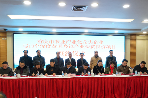 市农委相关处室领导,18个深度贫困乡镇所属14个区县农委分管领导、联络员以及乡镇负责人,主城区、渝西、渝东北、渝东南片区40家龙头企业出席本次签约仪式。